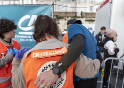 Depuis 150 ans, la Croix-Rouge française agit dans le but de secourir la population. Fort de cette histoire unique, elle est aujourd’hui une association agréée de sécurité civile, qui assure de nombreuses missions de secours. En Charente maritime, plus de 50 postes de secours sont ainsi mis en place chaque année. Notre délégation a notamment assuré l’ensemble des dispositifs du Marathon de La Rochelle ou 85 bénévoles sont mobilisés pour assurer la sécurité des participants.